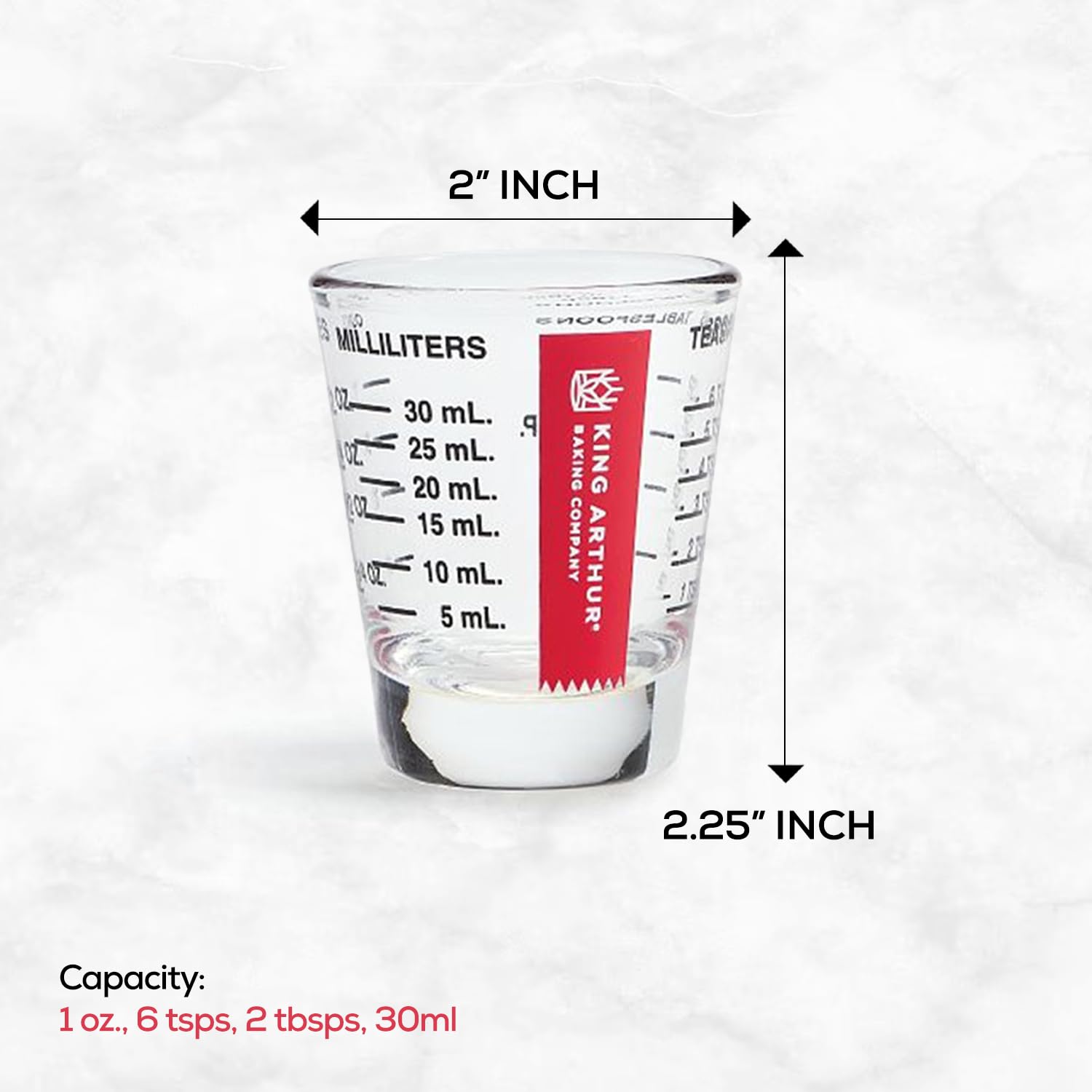 King Arthur Baking Company Mini Measure Multi-Purpose Shot Glass, Heavyweight Glass, Black, Set Of 2, For Liquid And Dry Ingredients And Precise Recipe Prep